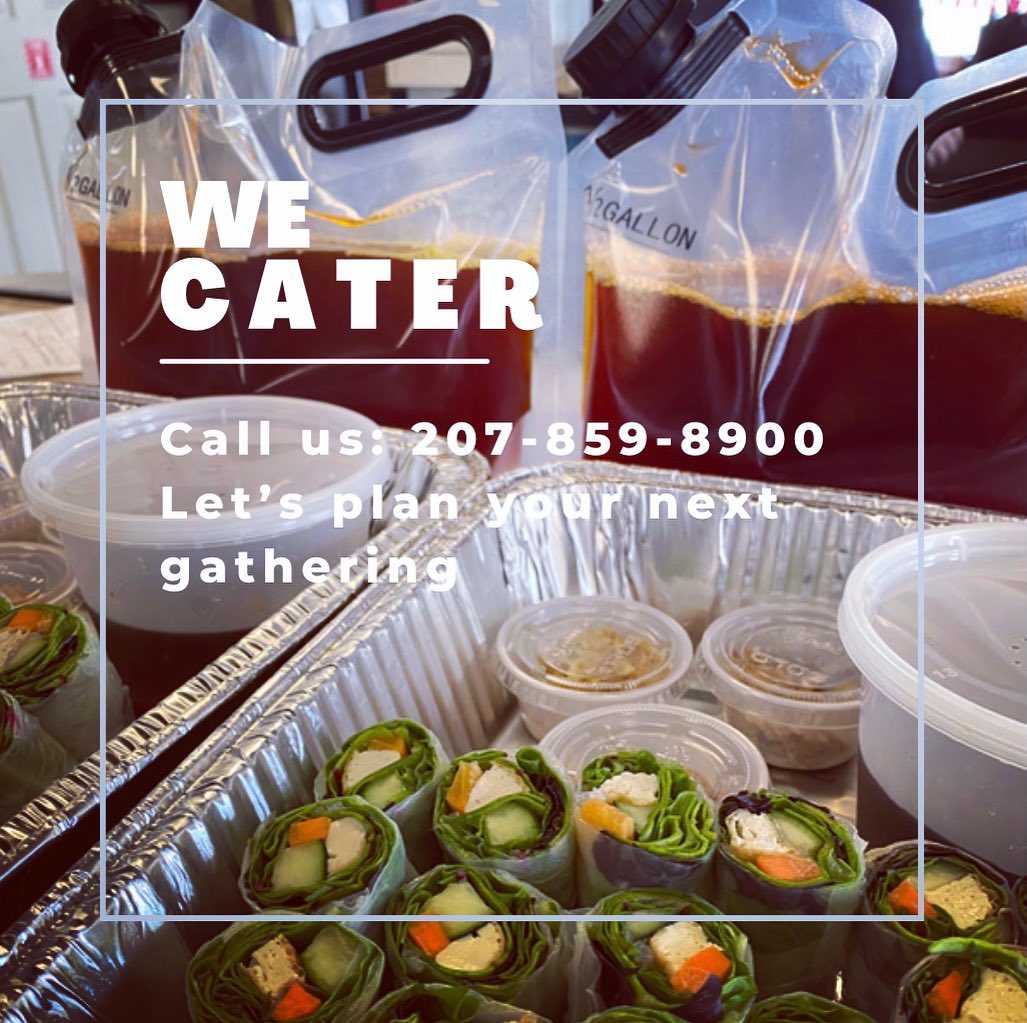 Please call us directly at 207-859-8900 to discuss your order. Delivery is available for catering orders. While we generally stay within Waterville for delivery, we can be flexible for catering delivery in the surrounding towns.