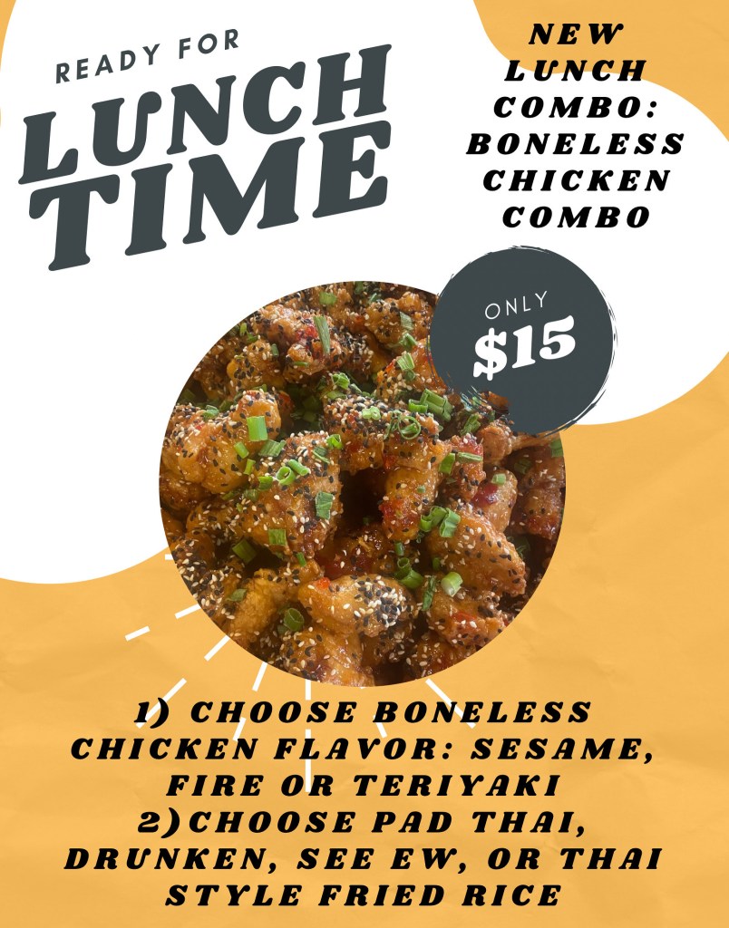 SPECIALS Classic Lunch Combo: $15 Boneless Lunch Combo: $15 Share this: Click to share on Facebook (Opens in new window) Facebook Click to share on X (Opens in new window) X Like Loading...